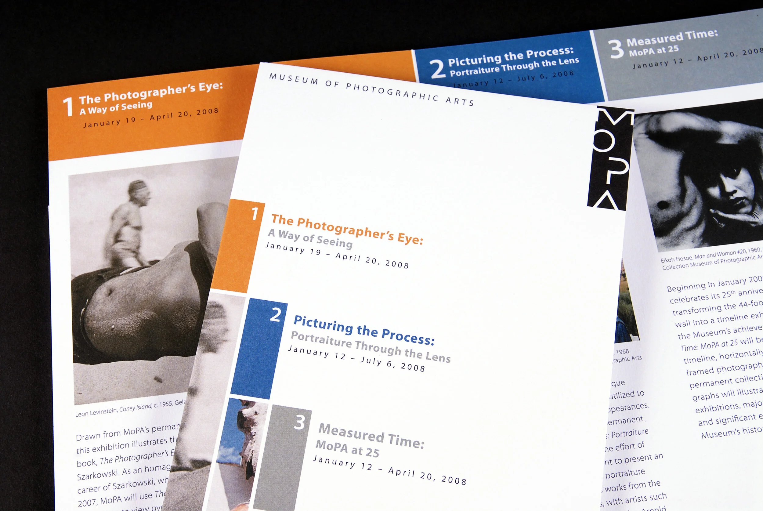 MoPA, a successful and well-respected organization in San Diego, came to us for guidance on event branding. MoPA hosts a variety of different exhibitions that require invitations, environmental displays, signage and wayfinders. We created a standardized design for an initial MoPA exhibition, which was then applied to all future events. In order to draw the attention of new and existing members, we also created new membership brochures that showcased the new exhibit branding.